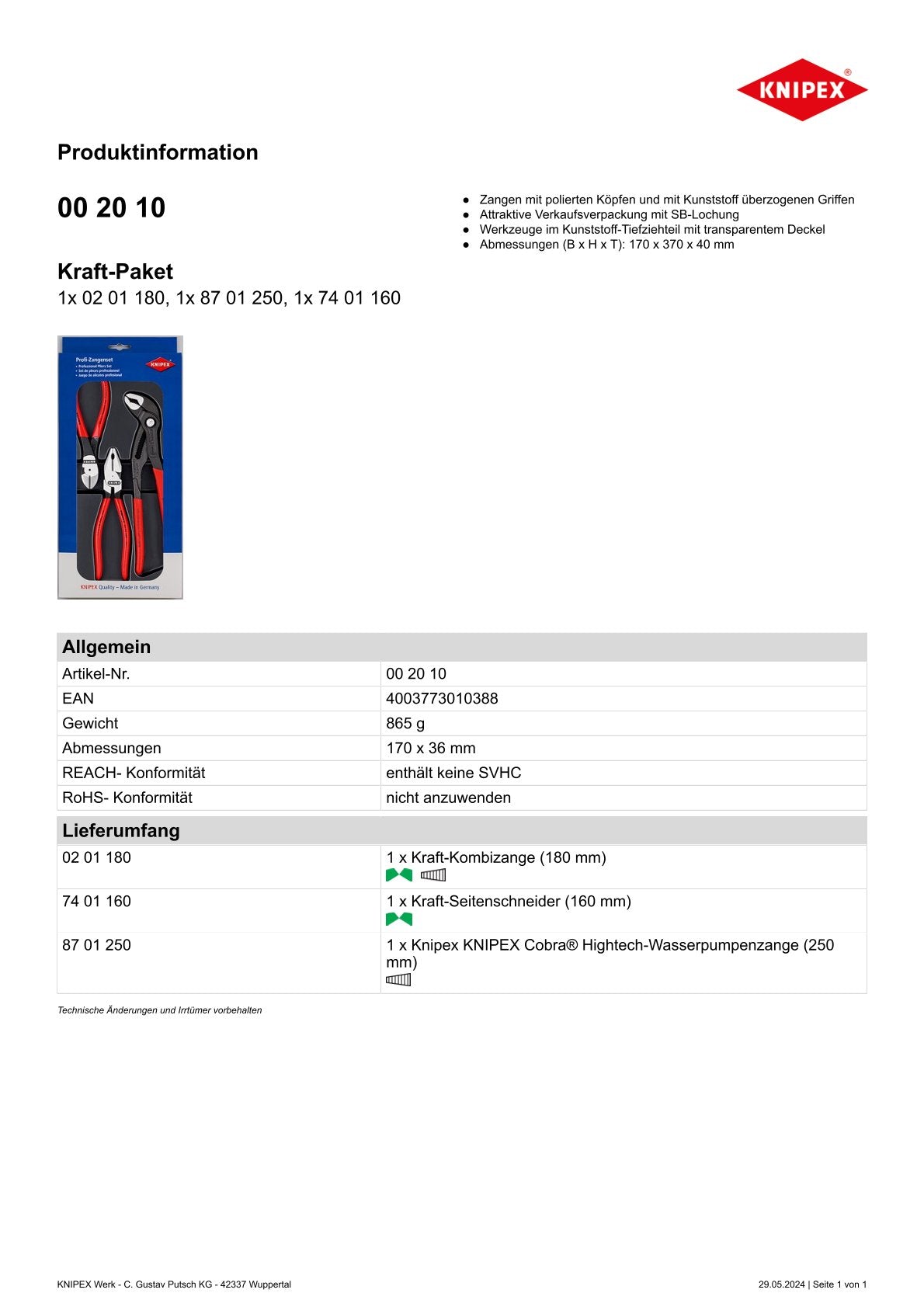 KNIPEX Zangensatz Kraft-Paket 3-teilig poliert Kunststofftiefziehteil - 00 20 10